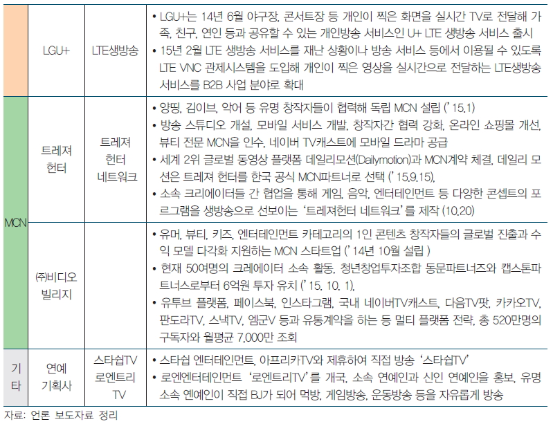 2) 최명호, MCN동향 : 모바일 친화적 콘텐츠로 부상, KT경제경영연구소, 2015.5.27.