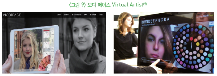 - 세포라(Sephora)는 모디 페이스(ModiFace)의 기술을 활용한 ‘Virtual Artist’를 통해 다양한 립스틱을 바를 수 있으며, 마음에 드는 제품은 바로 장바구니에 담아 구매할 수 있음