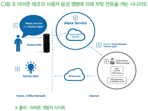 - 아마존은 자사 클라우드 서비스인 아마존 AWS를 적극 활용한 ‘스마트홈 스킬 API(1)’를 공개하여 스마트홈 파트너들이 아마존 에코 플랫폼에 쉽게 참여할 수 있음