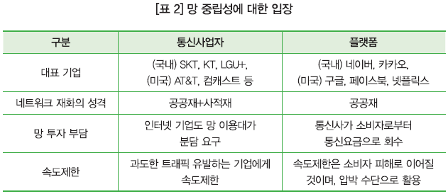 - 특히 거대 통신사가 운영하는 인터넷 서비스 자회사에 유리한 환경을 제공하고 다른 서비스의 품질은 저하시킬 우려를 제기