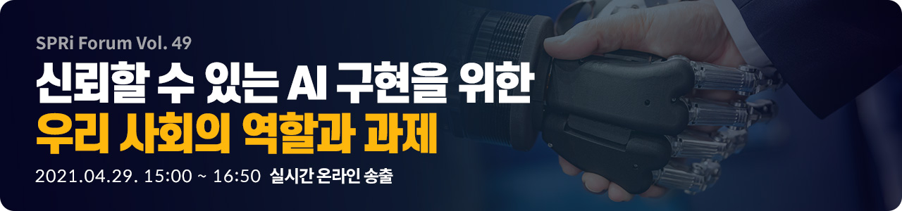 • [SPRi Forum 제 49회] 신뢰할 수 있는 AI 구현을 위한 우리 사회의 역할과 과제 2021.04.29.(목) 15:00 ~ 16:50 실시간 온라인 송출